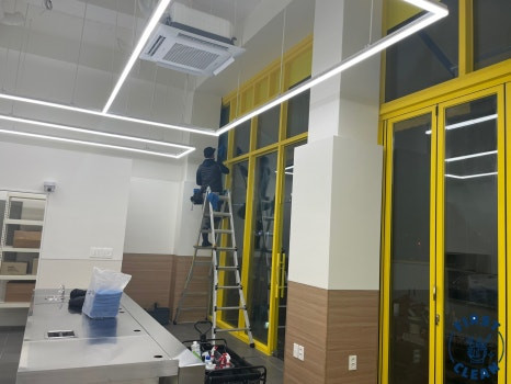 이곳은 이번에 오픈을 앞두고 있는 매장으로, 오전에 오픈 준비로 인해서 새벽 5시40분부터 조명을 켜고 매장 내부유리창부터 작업을 시작으로 외부유리창까지 구석구석 깔끔하게 청소를 진행해주었던 현장이었습니다.
