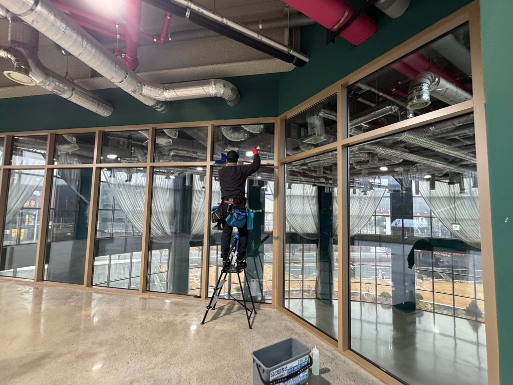 수도권 유리창 청소 시공 능력 1위 업체 퍼스트클린은현장 구조와 높이에 맞춰 전용 장비와 안전 장치를 사용해상단 유리까지 꼼꼼하게 작업을 진행했습니다.묵은 오염을 제거한 뒤 시야가 확 트이는 깨끗한 상태로 마무리했습니다.