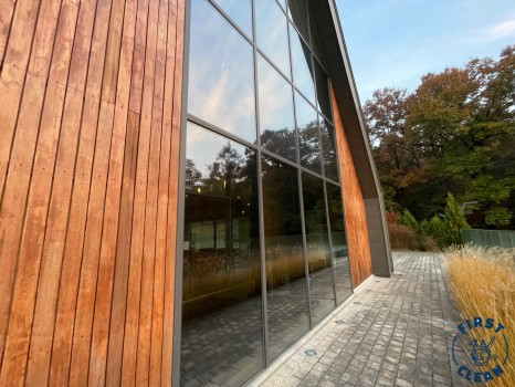 오염이 극심한 유리를 가진 현장으로, 유리에